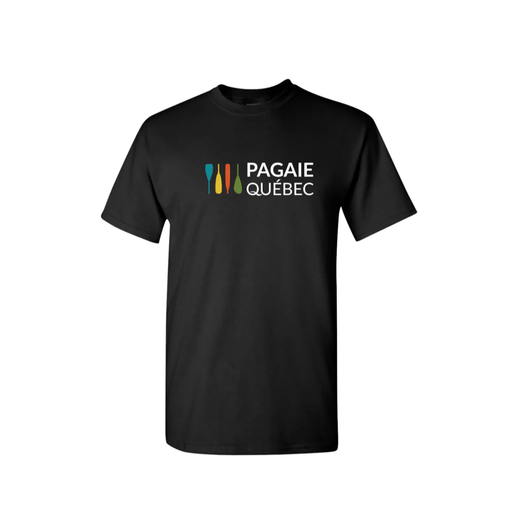 Disponible en quantité limitée, chandail à manches courtes avec le logo de Pagaie Québec.