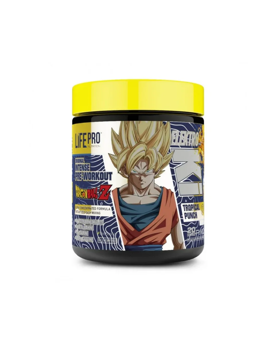 BOOSTEZ VOTRE ENTRAINEMENT COMME UN VRAI GUERRIER Z. Découvrez la puissance d’un entraînement explosif avec Life Pro Elektro Ki Dragon Ball Z Limited Edition 400g . Cette édition limitée associe une formule de pré-entraînement avancée à l’énergie et à la force de la série emblématique Dragon Ball Z , conçue pour optimiser les performances, augmenter l’endurance et réduire la fatigue pendant l’exercice. Si vous cherchez à améliorer vos performances et à vous sentir inarrêtable, ce supplément est la clé pour dépasser vos limites