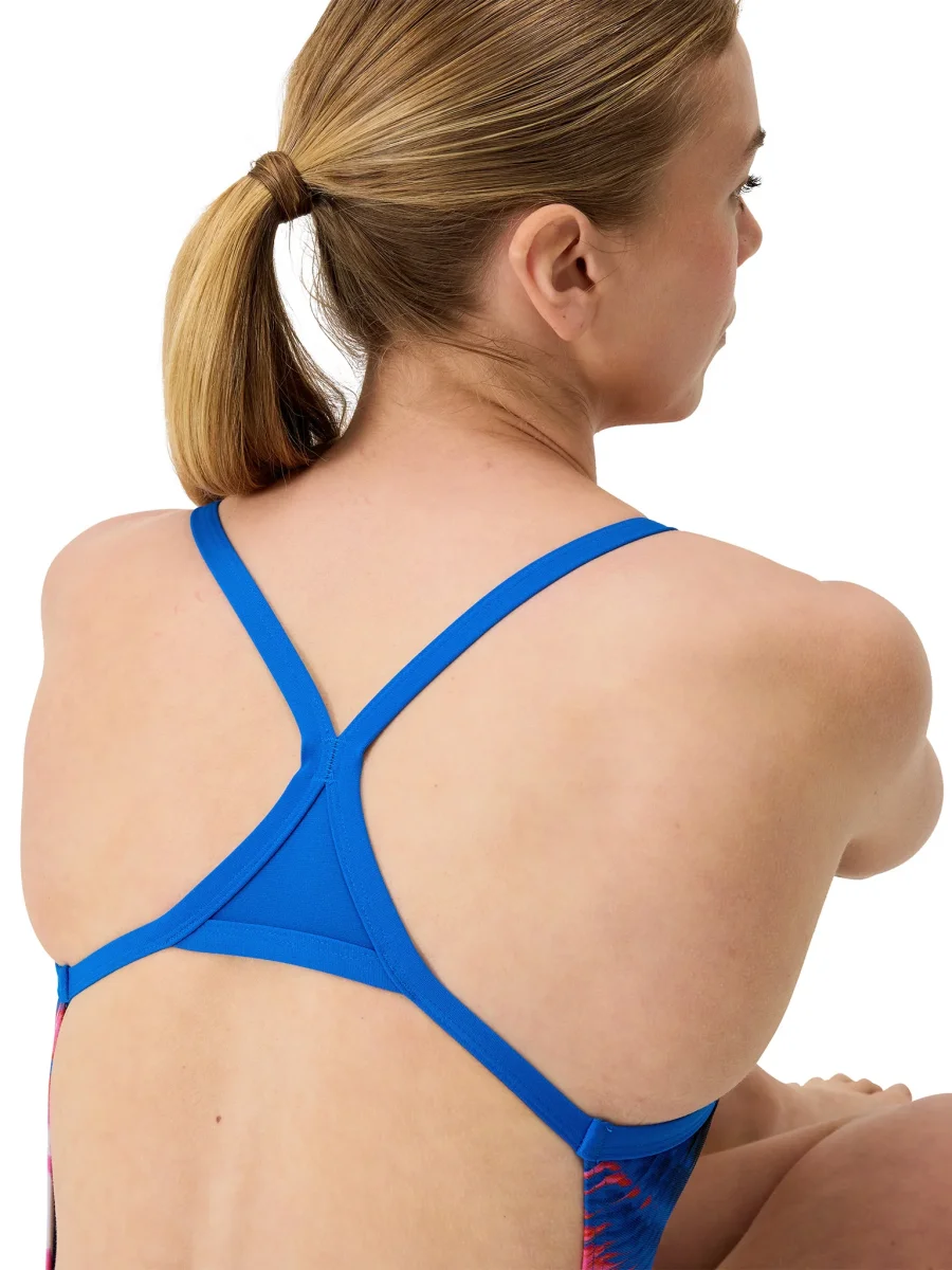Maillot de bain une-pièce Printed Turnback pour femmes – Electro Static/Lagoon Blue