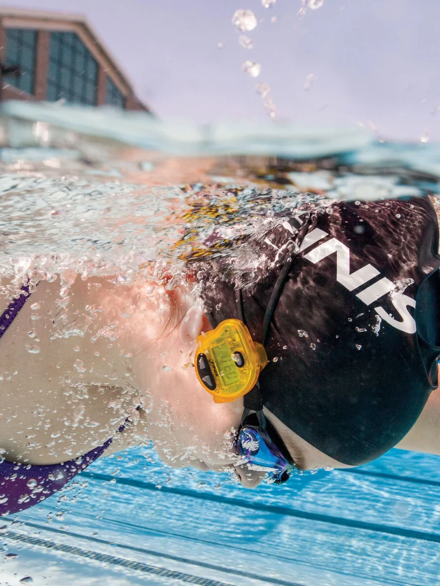 Tel un entraĂ®neur, le Tempo Trainer vous aide Ă rehausser et Ă maintenir votre cadence d’entraĂ®nement. Le Tempo Trainer Ă©met un bip audible sous l’eau, favorisant ainsi la constance des battements et des cycles de mouvement. Cet appareil d’entraĂ®nement se porte sous le bonnet de bain ou sous la ganse des lunettes, près de la tempe.